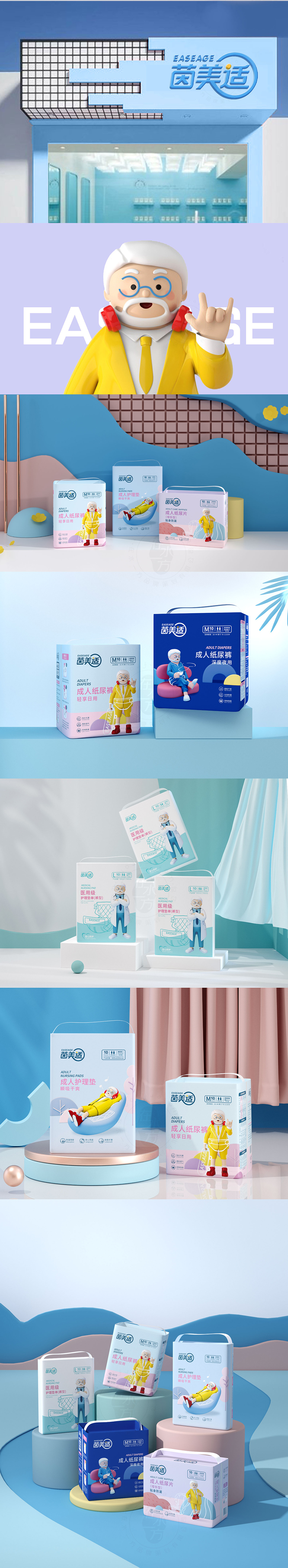 服務方案:我們將“茵美適”定義為新時代下成人失禁護理模式革新者,倡導給老人嬰兒級的舒適護理,如孩子般無負擔、年輕態(tài)的生活方式。通過品牌建設(shè)和視覺輸出,塑造具有品牌特色的形象體系。引入原創(chuàng)3D技術(shù)制作品牌IP,展現(xiàn)獨具一格的品牌特征和精神面貌。