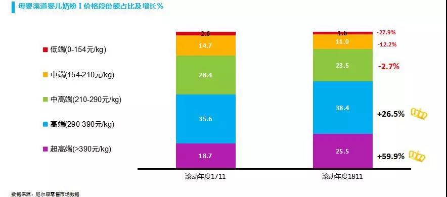 過去的一年,我們可以看到母嬰品類高端化市場集中爆發(fā),以下我們從奶粉、紙尿褲等細分領(lǐng)域的市場變化和品牌表現(xiàn)來證實這一點。