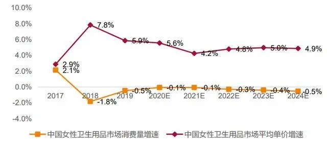 2017-2024年中國女性衛(wèi)生用品市場規(guī)模量價(jià)拆分
