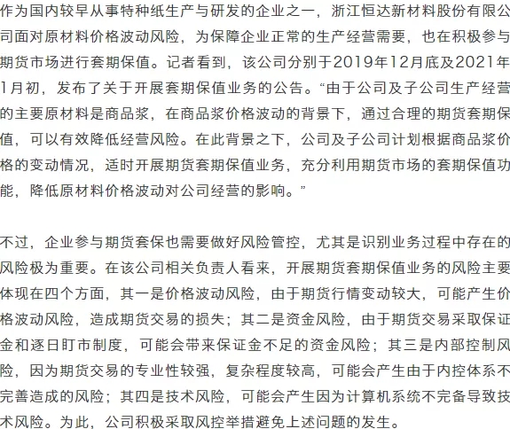 原料價格波動大紙廠套保需求顯著