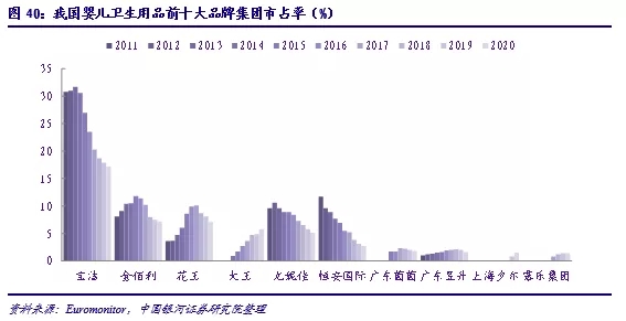 目前市場競爭格局的變化說明我國嬰兒衛(wèi)生用品市場尚未成熟,仍存在發(fā)展的較大空間,在消費升級和市場體量擴(kuò)張下外資企業(yè)和國內(nèi)新銳企業(yè)都有規(guī)模增長、擴(kuò)張市場份額的機(jī)會。短期內(nèi)我國嬰兒衛(wèi)生用品市場的行業(yè)集中度可能不會快速回升,新銳品牌的加入推動了產(chǎn)品升級也給行業(yè)帶來了活力和更多競爭,國產(chǎn)品牌具有本土化的電商營銷能力與新渠道把控力,以及適應(yīng)性更強(qiáng)的新品迭代能力,因此和外資品牌的拉鋸戰(zhàn)可能會持續(xù)進(jìn)行。長期來看,參考女性衛(wèi)生用品市場的發(fā)展路徑,市場成熟后外資品牌的品牌效應(yīng)會逐步顯現(xiàn),未能成功樹立品牌影響力的國產(chǎn)新銳品牌或?qū)⒅鸩酵顺鍪袌?,行業(yè)屆時將再次向龍頭集中聚攏。