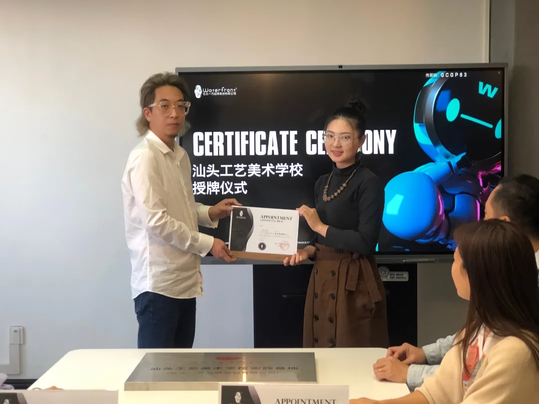 近日,“汕頭工藝美術(shù)學(xué)校實(shí)踐基地”授牌儀式,于在水一方品牌策劃有限公司舉行。