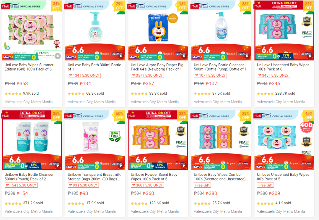 由于該品牌入局較早,有了一定的粉絲基礎(chǔ),以及品牌影響力,所以在shopee和TikTok Shop平臺銷量可觀,品牌將旗下的產(chǎn)品分割成不同的子品牌,便于寶媽消費者查看用品,而shopee站點的首頁可以發(fā)現(xiàn),該品牌目前推出多種活動,并且近期正在準(zhǔn)備shopee的6.6大促。