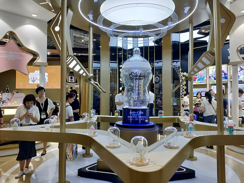 還有展商從宇宙飛船元素找到靈感,結(jié)合到奶瓶產(chǎn)品陳列布景當(dāng)中,令人印象深刻。
